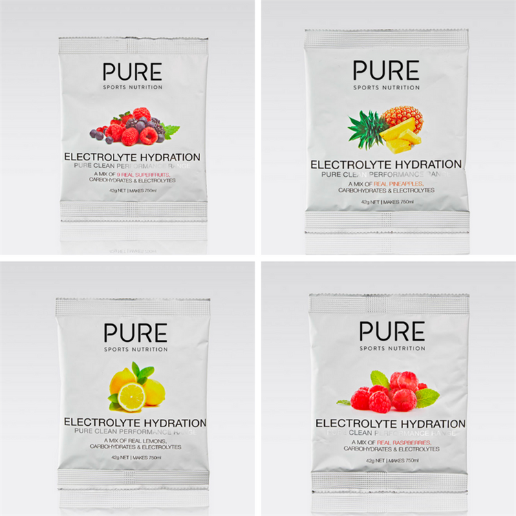 - Single serve 42 gram PURE Electrolyte Hydration drink sachets