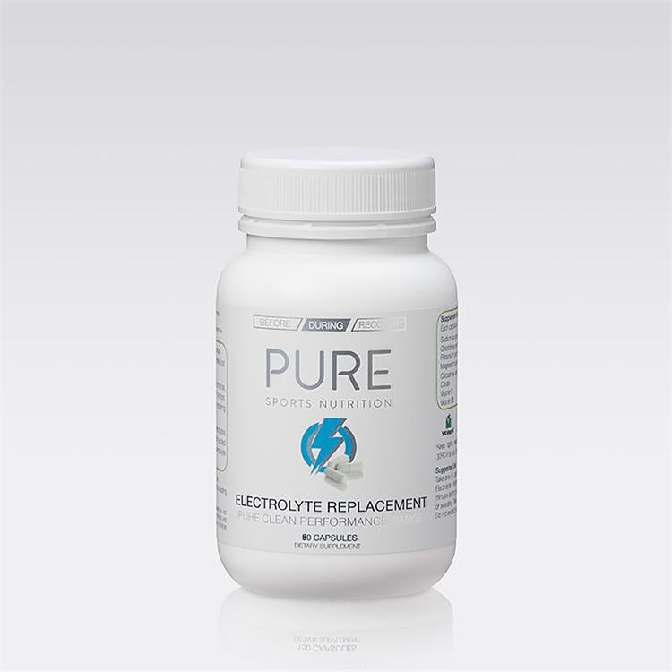 PURE Electrolyte Replacement Capsules are formulated to help maintain the body's electrolyte levels and to help replace minerals lost during sustained strenuous exercise and in hot conditions, without additional carbohydrates. Replacement of electrolytes can assist the support of normal muscle function. Recommended for endurance athletes or those requiring additional electrolytes during hot conditions. PURE Electrolyte Capsules contain the electrolytes sodium, magnesium, potassium and calcium with added Vitamin D and Vitamin B6 for electrolyte absorption.