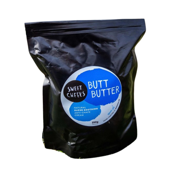A natural anti-chafing cream for all athletes. Soothing and antiseptic, it helps to prevent chafing, blisters and sores when biking, running or swimming. Apply Butt Butter before you exercise to any spots that rub or are irritated. Because it is Beeswax based, it is safe to use with wetsuits and stays on the skin even in wet conditions.