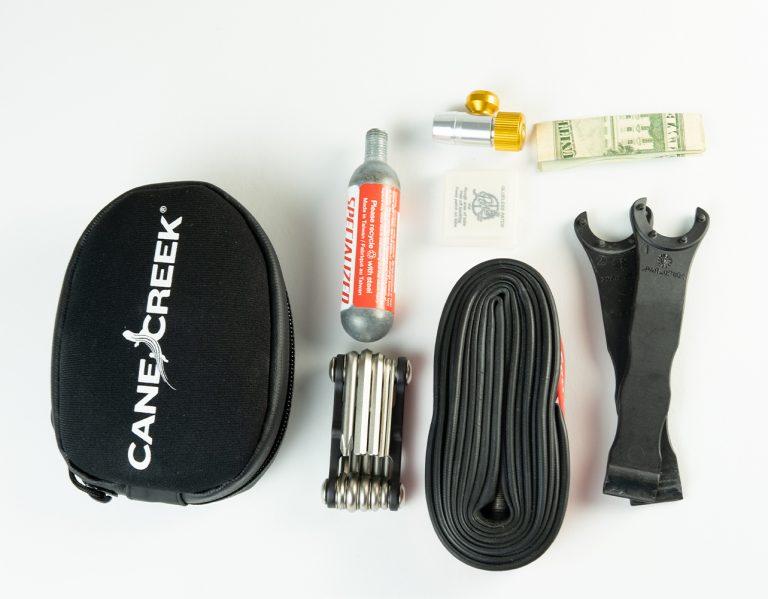 It has room to carry a 700×25 or smaller tube, tire levers and a CO2 inflator.