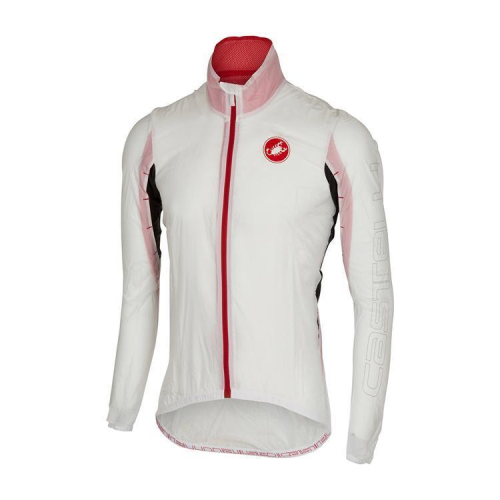 We’ve engineered an extremely high amount of protection into a minimum-sized package. Using a 30 g/m2 water-repellent and windproof fabric, we’ve created a jacket that disappears into half a jersey pocket when not in use, yet provides wind and rain protecion when needed. Fit is predictably Castelli: close to body to minimize flapping fabrics. Serious equipment for unpredictable conditions.