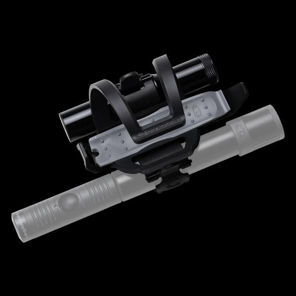 The side-loading bottle cage can easily be installed for left- or right- handed bottle access, regardless of frame mounting position.