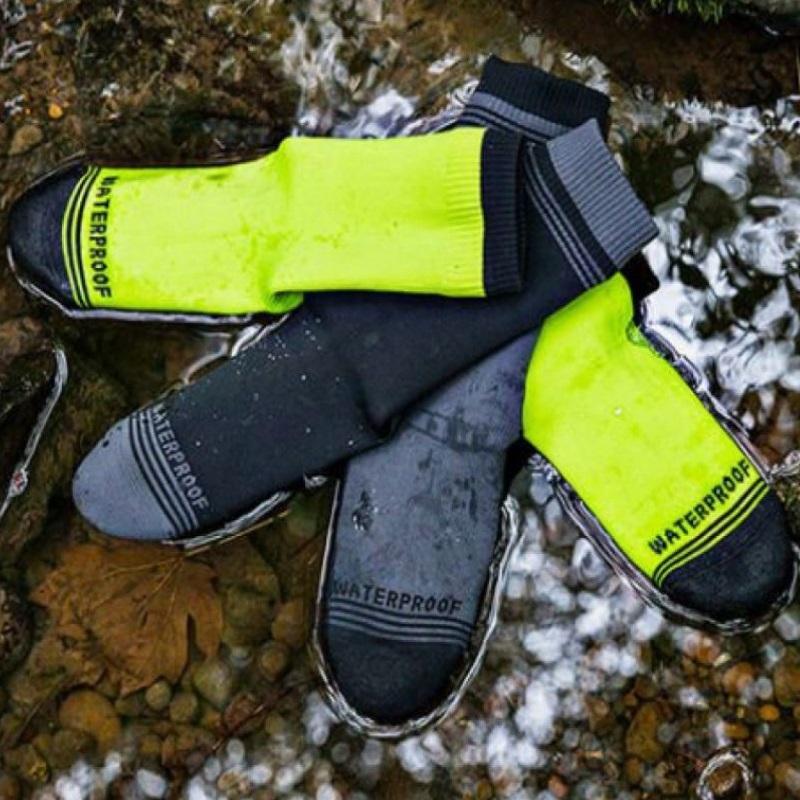 Don't let cold wet feet ruin your outdoor fun! We developed Crosspoint Waterproof Socks to solve the soggy toe problem and to keep your feet dry while cycling, running, hiking, hunting, any outdoor activity in the rain. Our socks are fully waterproof thanks to 3-layers: a wear resistant knit exterior (feels like a regular sock), a waterproof breathable Artex™ membrane, and a Coolmax FX moisture wicking anti-bacterial lining. The result is a sock that feels like a sock but protects like a rain bootie. Now you don't have to choose between keeping your feet dry and breathability (we don't like sweaty feet either). A reinforced toe and heel provide comfort and durability.