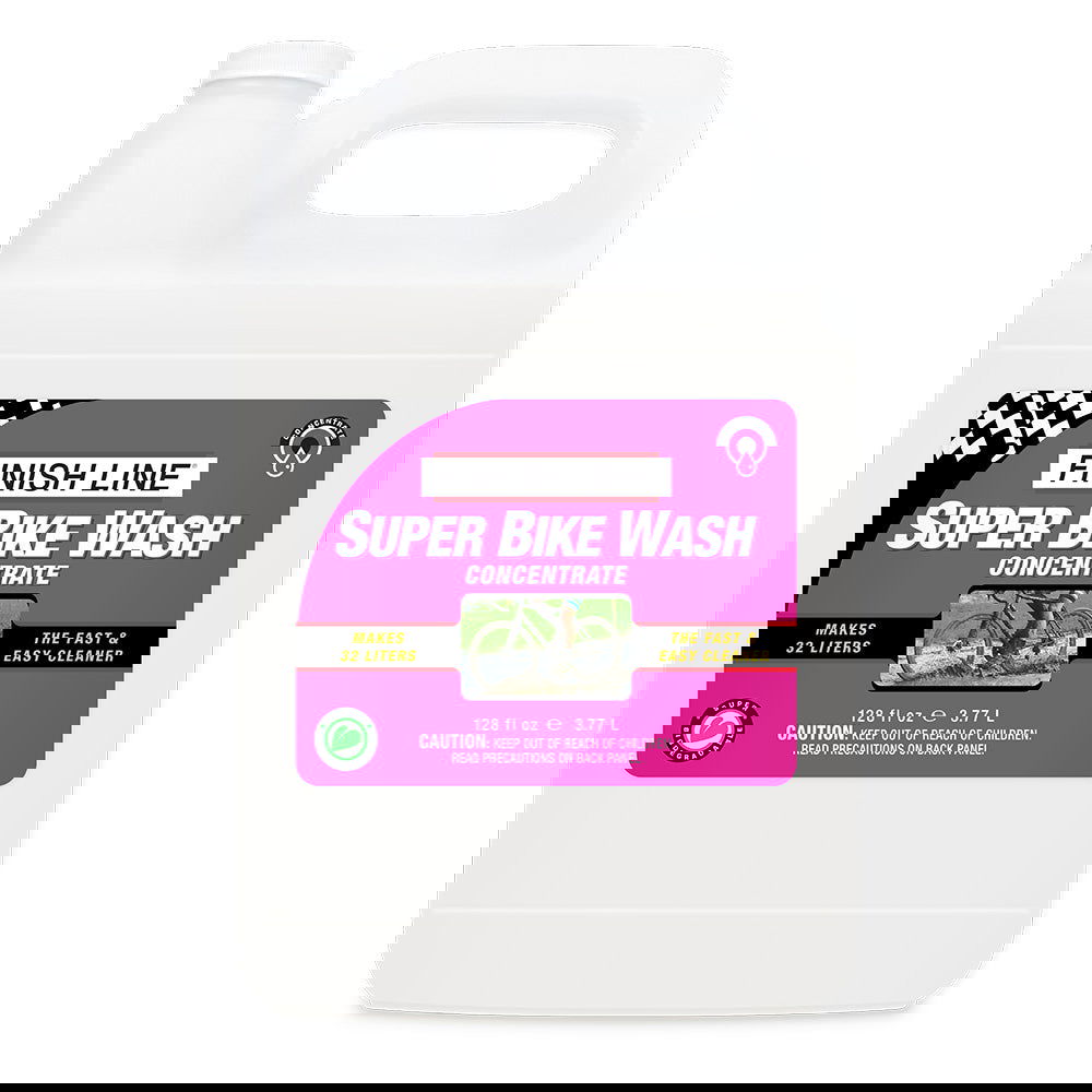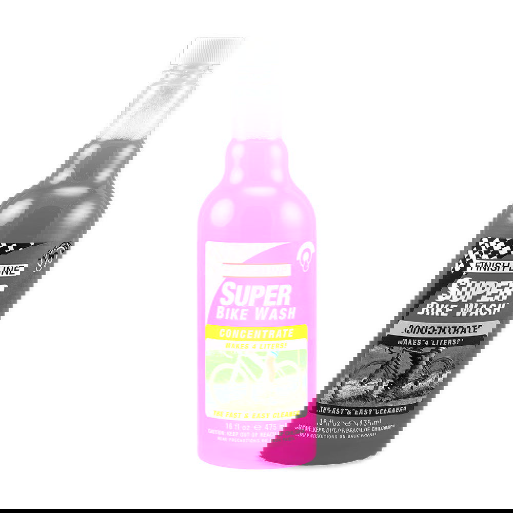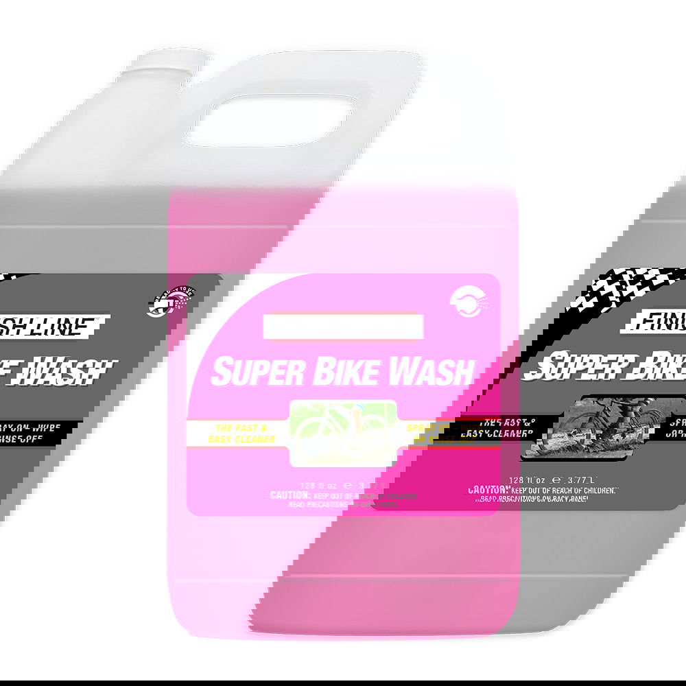 Use Super Bike Wash™ to quickly clean dirt, clay, road grime, chain soils, nutritional residues and winter storage grime off all surfaces of your bike with little to no scrubbing. Super Bike Wash™ uses state of the art, eco-friendly cleaning agents that work together to create a high speed cleaning system. Super Bike Wash™ is non-toxic and meets the highest readily biodegradable standards. It can be safely used indoors or outdoors.