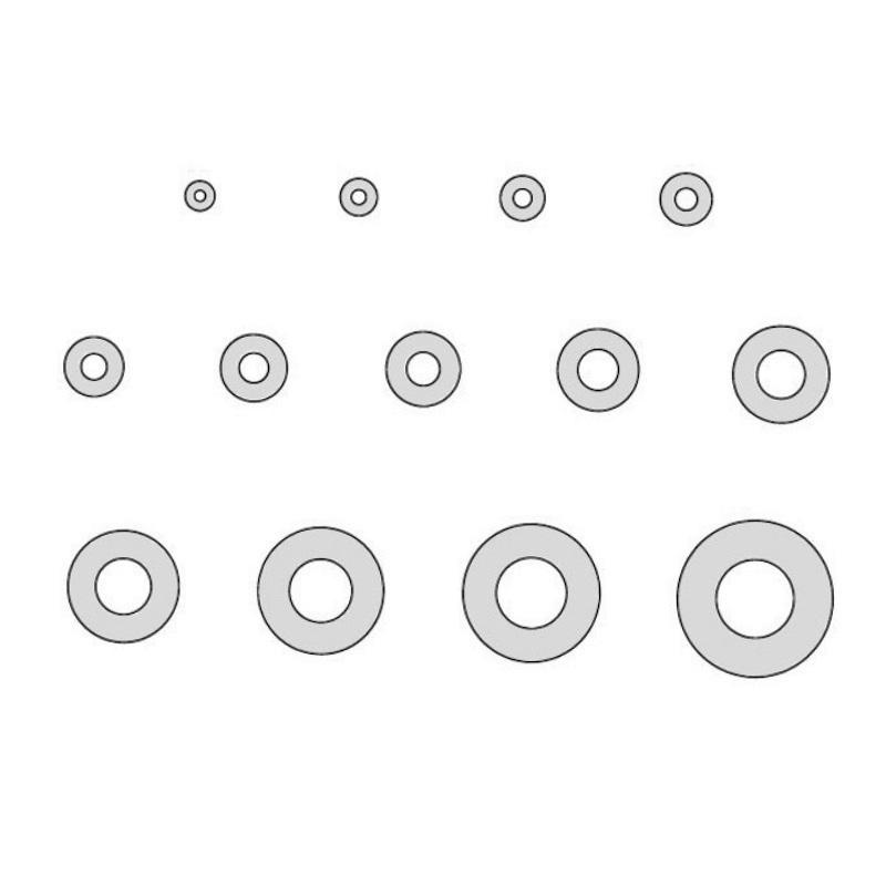 Washers metric flat zp 3mm (200), Washers metric flat zp 4mm (200), Washers metric flat zp 5mm (200), Washers metric flat zp 6mm (200), Washers metric flat zp 8mm (200), Washers metric flat zp 10mm (200), Washers metric flat zp 12mm (50), Washers metric flat zp 14mm (50), Washer flat steel 8mm x 17mm x 1.7mm (200)