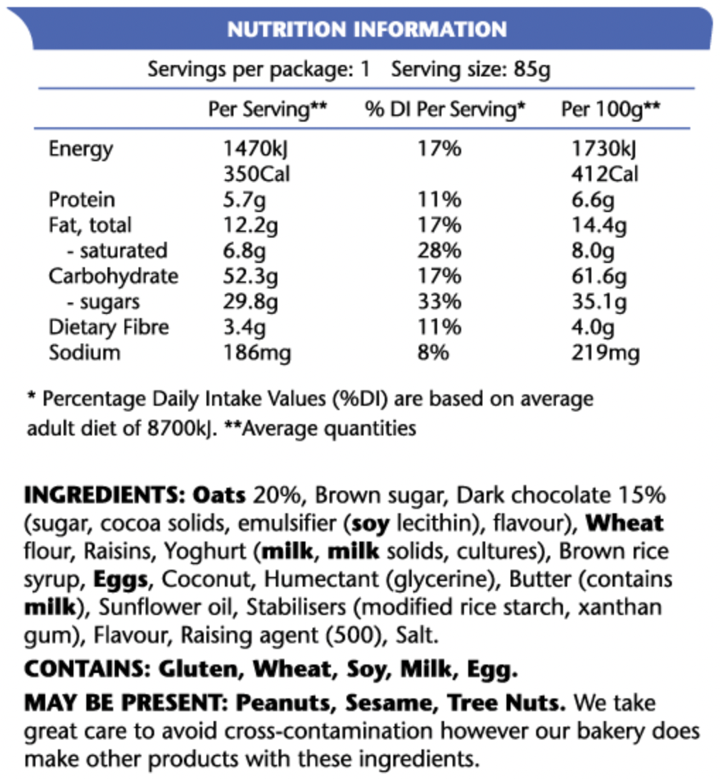 • Natural sugars from raisins, coconut and natural yoghurt.
