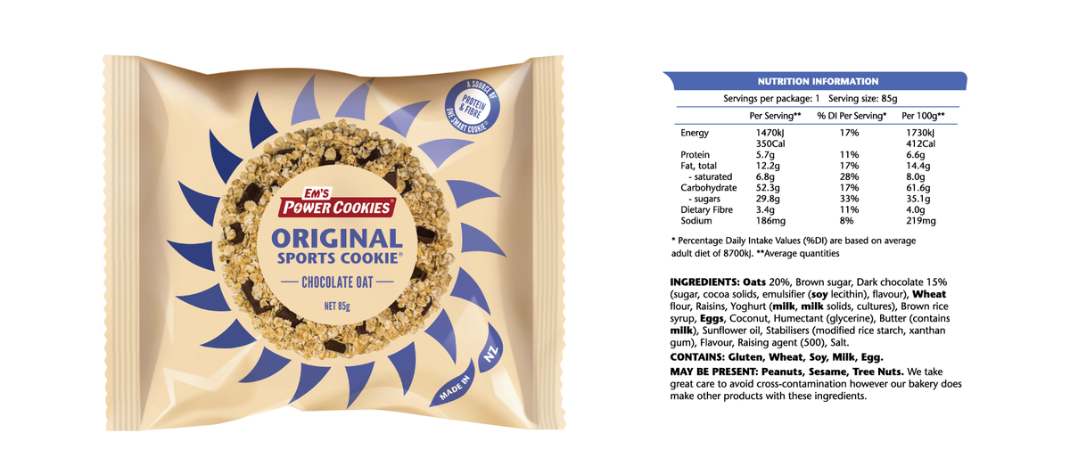 Power up your Adventures! Em’s unrivaled Original since 2004 is the first sports cookie of it’s kind on the NZ market. Why do we call them Power Cookies? They’re dense, nutritious, delicious, compact, high-energy, sustaining and pack a lot of power. That’s why! Our Original Sports Cookie is famous for its classic scrumptuliciousness. Great as a breakfast cookie, with a coffee as well as for die-hard adventurers.