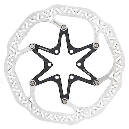 Jagwire’s LR1 Pro Lightweight Rotors are a stylish way to upgrade the performance on your bike. Utilizing a 2-piece construction, they feature a separate aluminum spider and stainless steel brake track. The steel braking surface delivers quiet, consistent performance while the spider helps reduce rotating weight by about 15% compared to a traditional single-piece rotor.