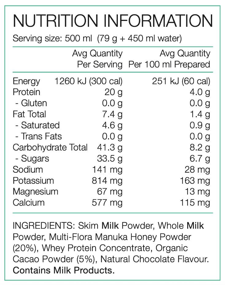 • PURE - 475g RECOVERY SHAKE ORGANIC CACAO & HONEY