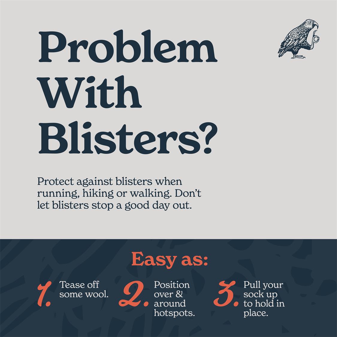 Your Blister Stop Wool will provide padding, prevent rubbing, wick away moisture and the infused Mánuka Oil will soothe, lubricate and keep the area free of bacteria and fungus – what more could you want?!