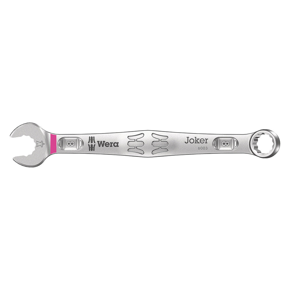 As the installation space becomes increasingly tight during screwdriving, tools are necessary that enable users to work successfully even in such situations. Narrow spaces require additional placement points of the tool. Can spanners be modified so that the placement possibilities of the tool increase? The combination of the 7.5° pivoted mouth and the double hexagon geometry doubles the placement points. A repeated 180° turn of the wrench around the longitudinal axis during screwdriving provides four placement possibilities, and bolts or screw heads can be engaged every 15°. The Joker 6003 with its smart mouth geometry significantly expands the range of uses in confined spaces. The Joker 6003 will automatically find the respective placement point after every turn. The slim yet robust ring side is angled by 15° to the tool axis. The high-quality surface treatment achieves a high and long-lasting corrosion protection. With tool finder "Take it easy": colour coding by size.