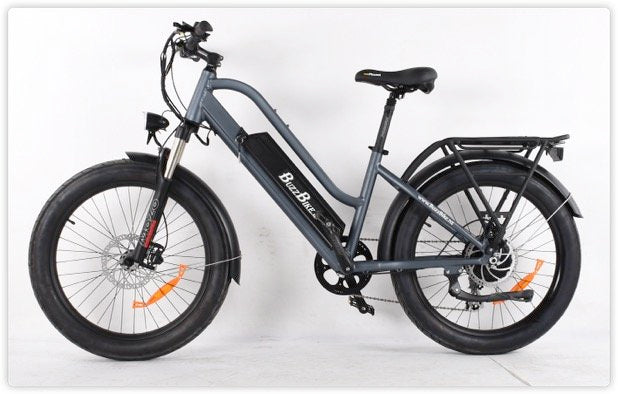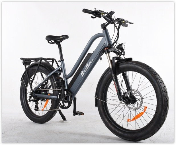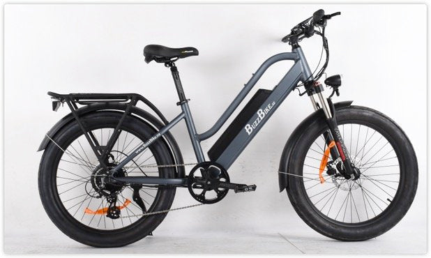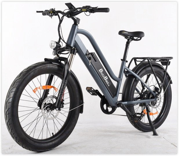 The BUZZ BIKE TRAIL BLAZER STEP THROUGH 24" X 4" FAT TYRE is an economical choice for those of short to medium height.