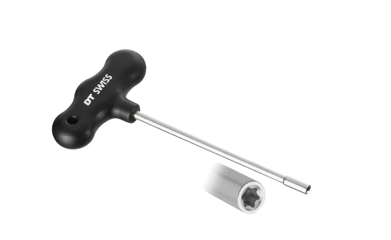 These spoke holders effectively eliminate spoke twist when truing or building wheels with bladed spokes (e.g. DT aerolite). Thanks to their design, the spoke can be held close to the nipple, which eliminates twisting. Compatible with all DT Swiss nipple wrenches.