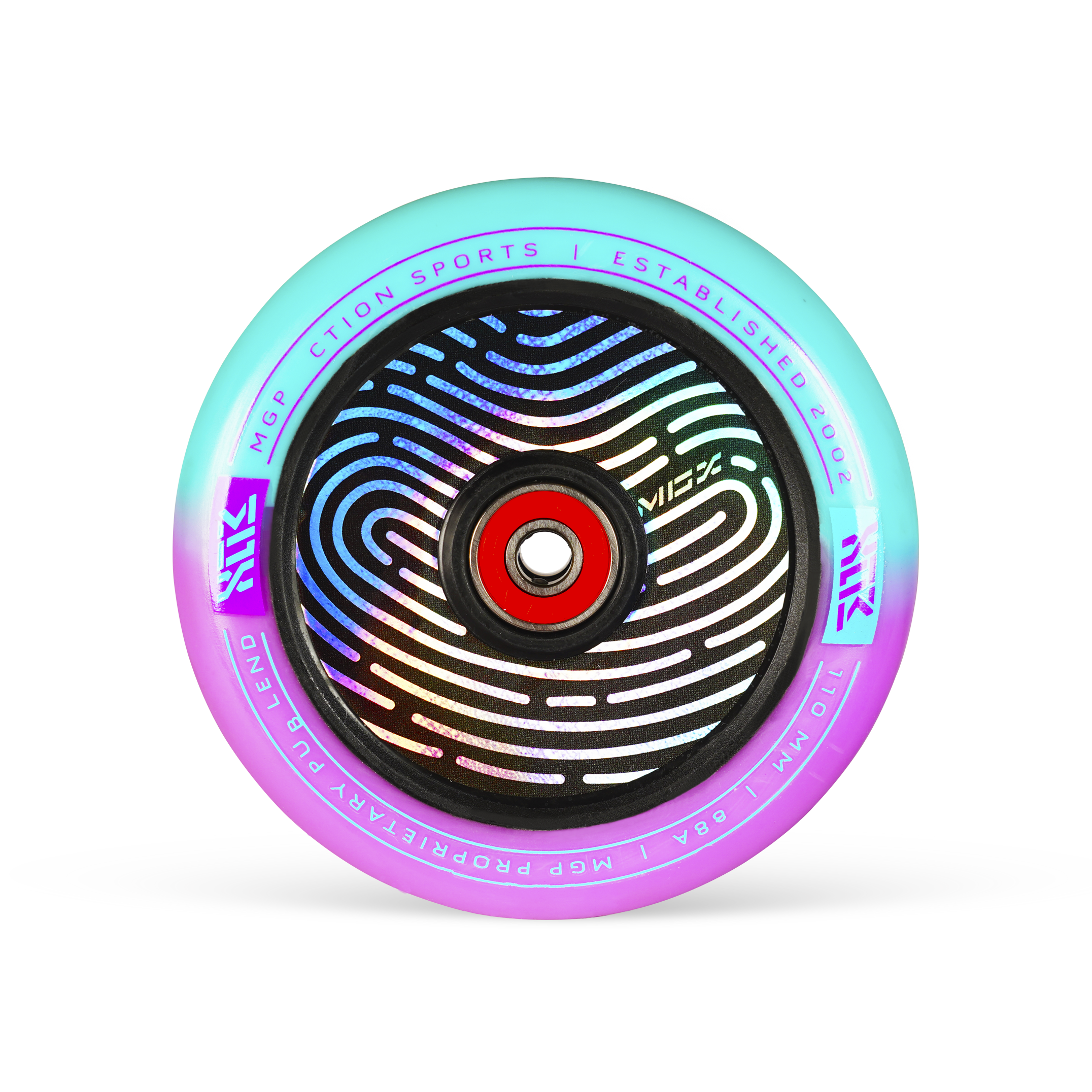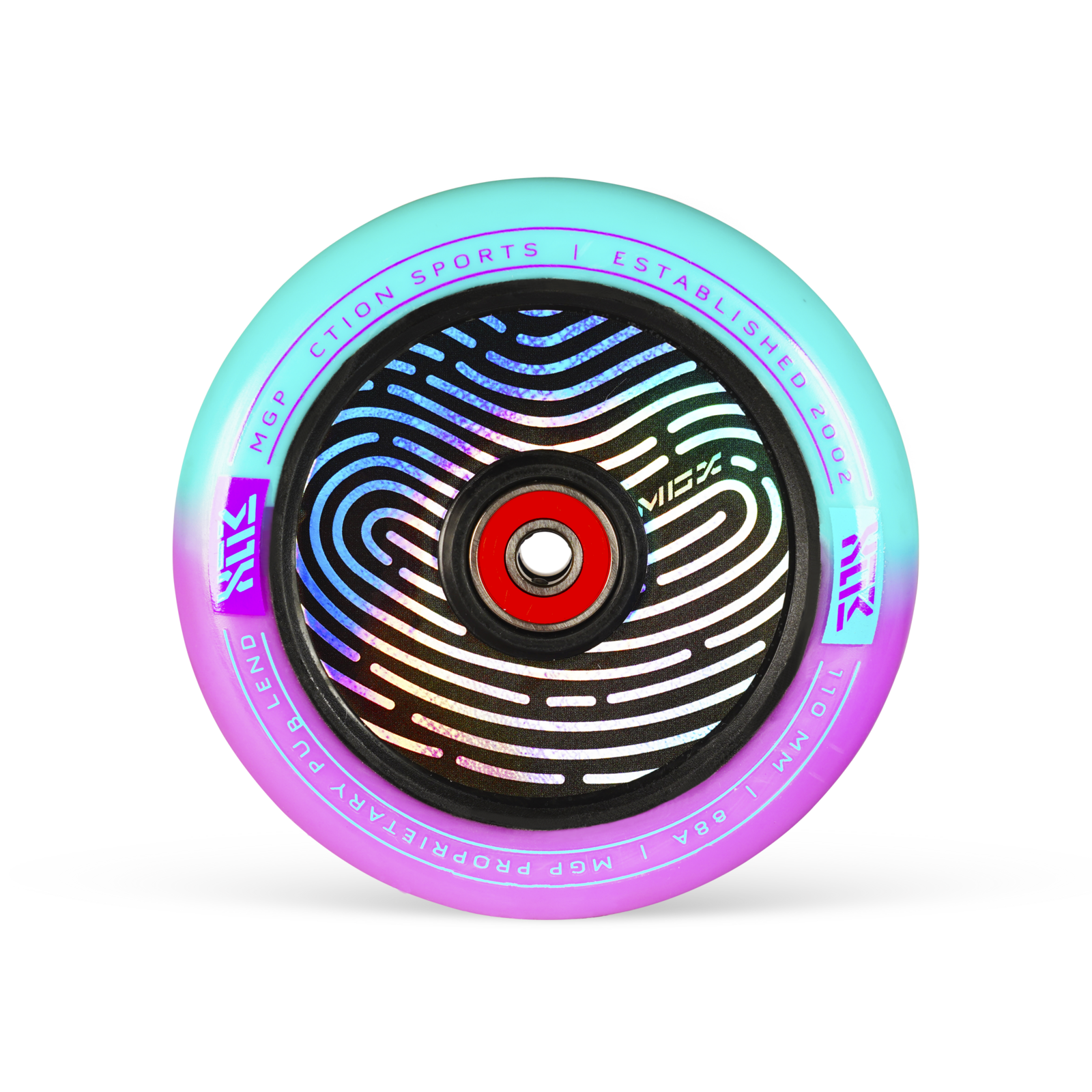 Feast your eyes on this 110mm holographic hollow core with two-tone MADD proprietary polyurethane blend.