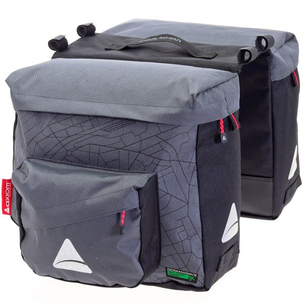 OCEANWEAVE® 600D reclaimed fishnet polyester with waterproof polyurethane coating. Water-resistant stitched construction. |