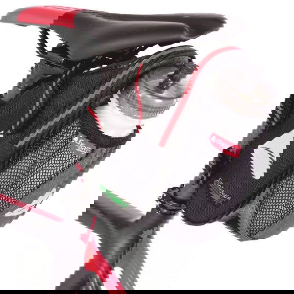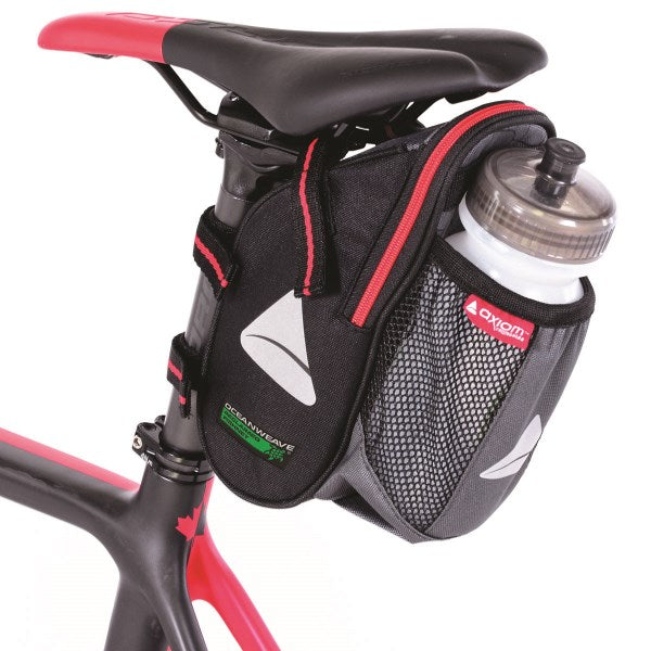 A high-volume, under-the-seat bag with a water bottle pocket designed specifically for increased hydration and storage needs of distance cyclists. Enough room for all your gear needs, with enough extra room for extra food and a jacket.