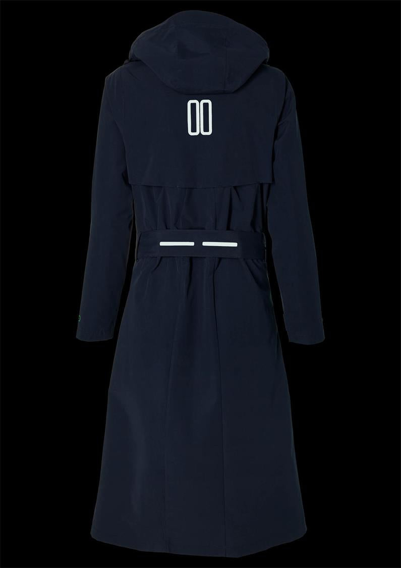 The Basil Mosse is a functional and very stylish cycling raincoat for women. The blue jacket is waterproof thanks to 5.000 WP and has a breathability of 5.000 MVP. The DWR coating allows for rainwater to drain off, so perspiration escapes to the outside. At the front of the jacket, there are two zippers: an upper zipper including a chin guard and a lower zipper. These zippers can be used separately from each other. An extra lining behind both zippers keeps your clothes dry. On the sides of the jacket, there are two more zippers. These zippers can be used when cycling with the jacket. You can also broaden the jacket with extra fabric, so you get more freedom of movement. The trench coat also has a mesh and taffeta lining has handy side pockets and is ventilated on both the back and front. The tops of the sleeves are extended and adjustable for a pleasant and comfortable feel. An extra waist elastic on the inside of the jacket contributes to a perfect fit.