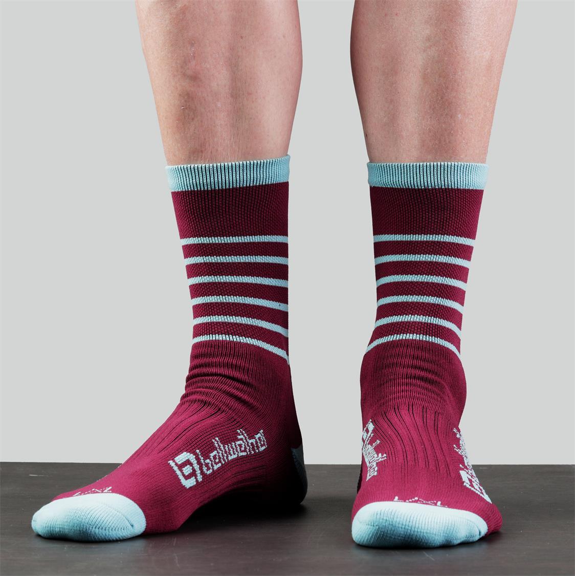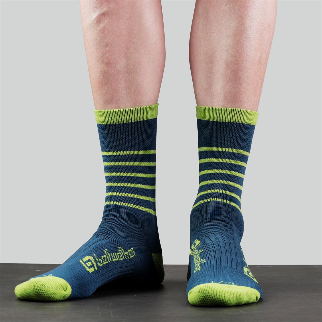 A modern extended cuff length style is combined with high-performance wicking yarns to keep feet cool, dry and comfortable in the Blitz socks from Bellwether. The abrasion resistant heel and toe areas are paired with extra cushioning to ensure comfort and longevity.