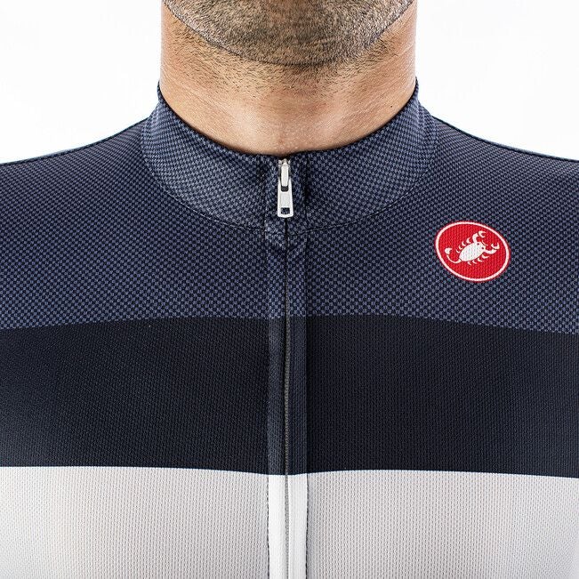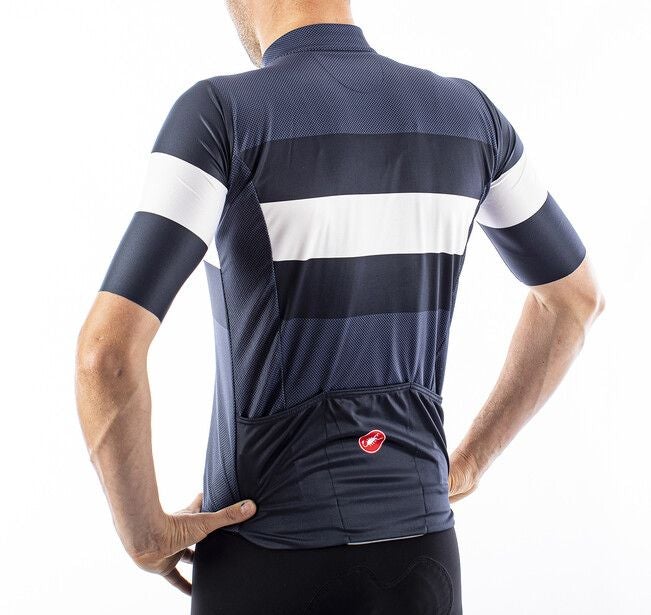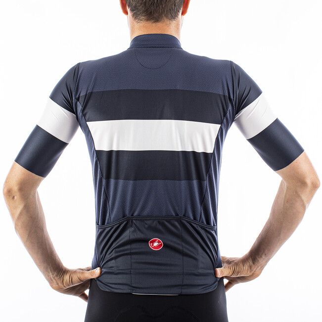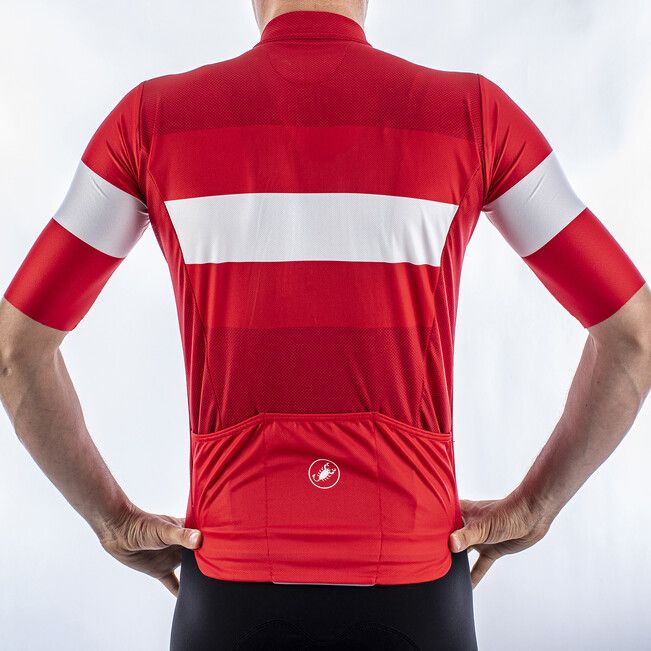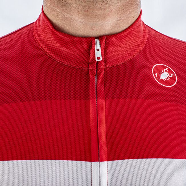 Classic design based on the Castelli Squadra jersey construction that updates a traditional cut with technical details like a drop-pocket design and stretch raw-cut sleeves for great fit and comfort.