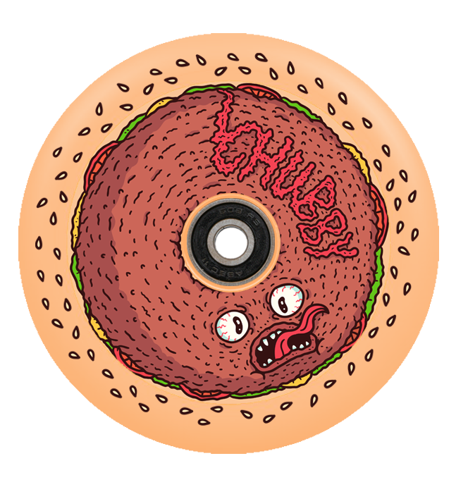 These wheels come hydro dipped with Chubby's awesome burger graphic and come supplied in there own Doughnut Box so they look awesome even before you fit them.