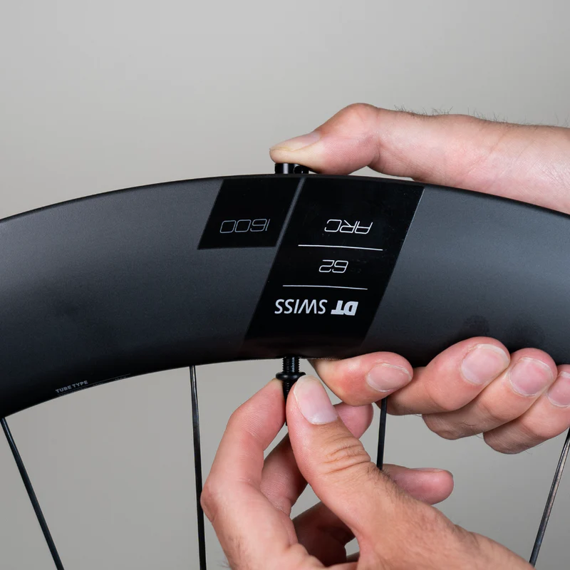 - Push the valve through the valve hole in the rim from the outside towards the center. Place the o-ring over the tip of the valve and slide down until it sits on the rim.