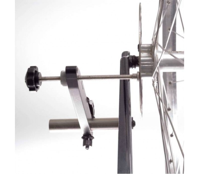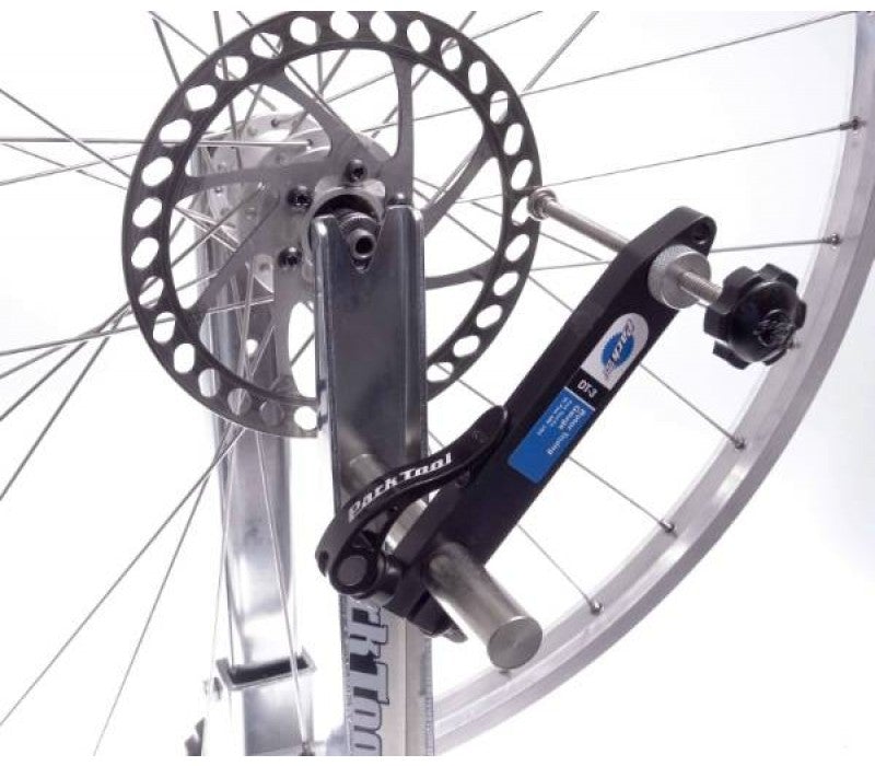 Accurately gauge the straightness of disc brake rotors while the wheel is mounted in a TS-2.2 or TS-2 Professional Wheel Truing Stand. The DT-3 features an infinitely adjustable, finely threaded indicator gauge. Works with any diameter brake rotor.