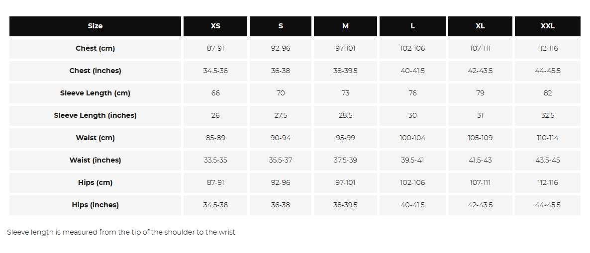 - Available in 6 sizes: XS, S, M, L, XL, XXL