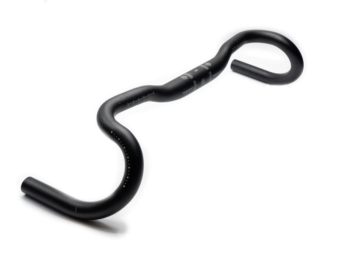 For the rider that wants to go everywhere, the Kitchen Sink Handlebar is the bar that has everything. With widths from 44cm and 47cm, it's clear we believe in wide. But the added stability and control of a wider bar should not come at the cost of comfort. So we've thrown everything into this handlebar: