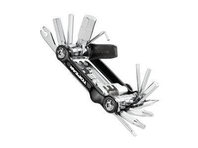 A precision full metal 23 function mini tool made to handle any road or trailside repair. T10 and T25 Torx wrenches simplify hydraulic disc brake work. Includes self-tightening tool and a neoprene bag. The perfect tool for endurance racing, training and touring.