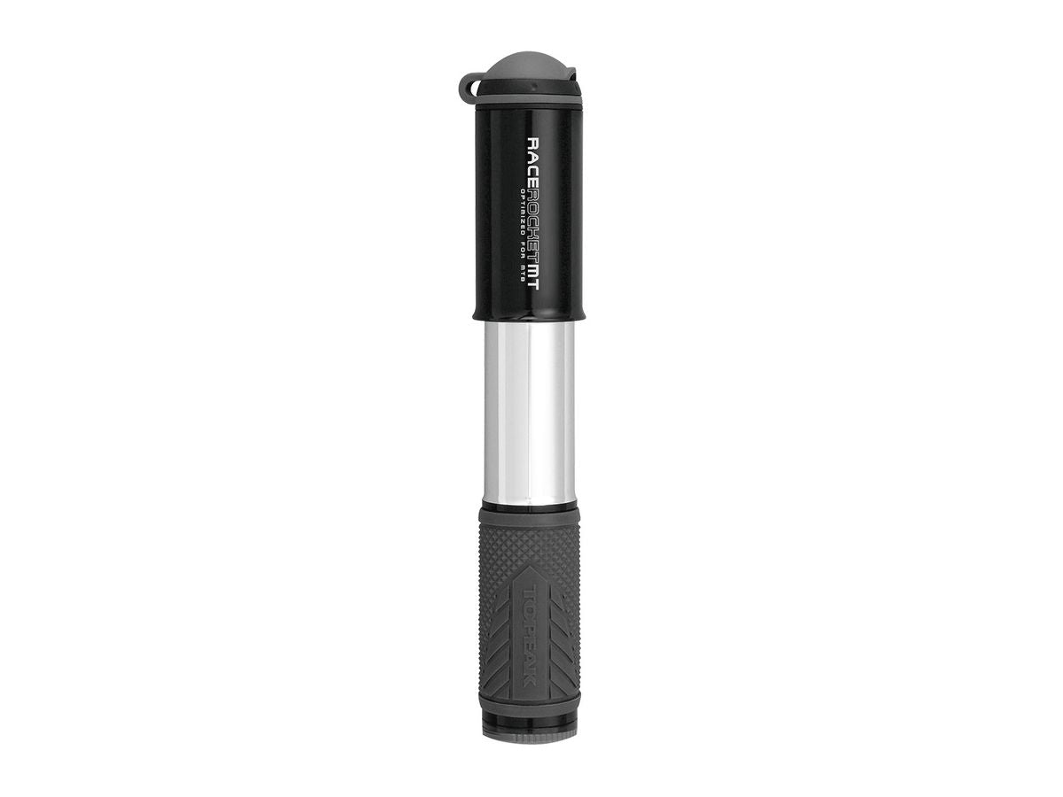 Our fattest version in the RaceRocket® series this all aluminum mountain pump gets big volume tires up to pressure fast. This elegant little mini pump features a full aluminum body, head and pump handle and is designed with an increased barrel diameter to push more air per stroke. An extendable hose with SmartHead® ThreadLock fills Presta and Schrader valves with ease and helps take stress off the valve stem when filling the tire. Its efficient and smooth action inflates tires to 90 psi / 6 bar. Compact in size it easily fits in a jersey pocket or saddle bag and with a low weight of only 114 g the RaceRocket® MT is never a burden to carry into the backwoods.