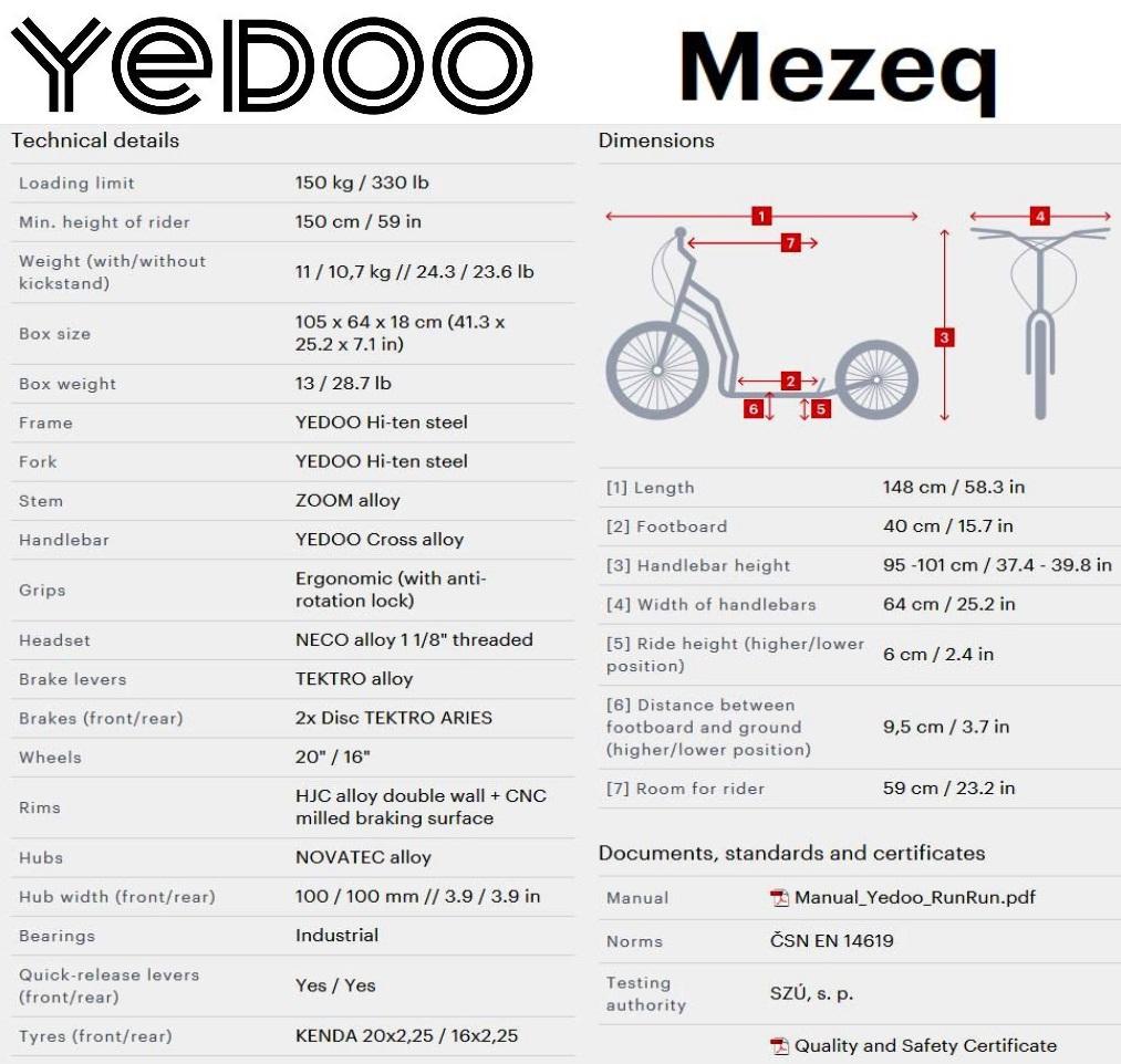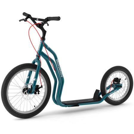 Designed for strength & speed with 20" front & 16" rear wheels, the Yedoo Mezeq RunRun scooter is perfect for city use, rough terrain, or long distances. The Tektro Aries disc brakes provide effective stopping power even in the wet and mud.