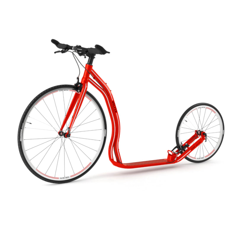 It's quick and it's light, you'll get a real kick out of the Wolfer Scooter! Larger wheels, the right geometry and aerodynamics, perfect frame with optimal toughness, plenty of room for the rider, low footboard, cutting-edge components.